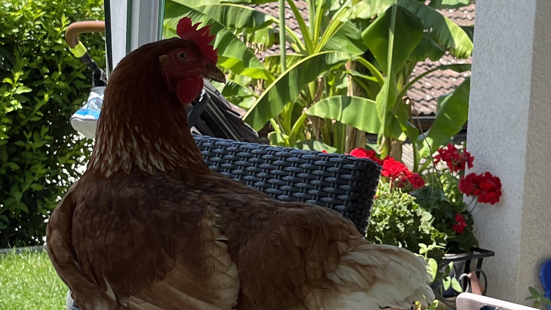 Unser Haushuhn macht mit uns alles mit und chillt auch im Winter mal drinnen auf dem Sofa und schaut mit uns skierennen im tv, oder schwingen mite Böse und hört natürlich immer mit uns Radio Argovia. Wie im Video zu sehen ist macht sie für Trauben alle kunststückli und hüpft auch mal von Stange zu Stange dafür oder springt eben hoch um das Leckerli zu erhaschen.
